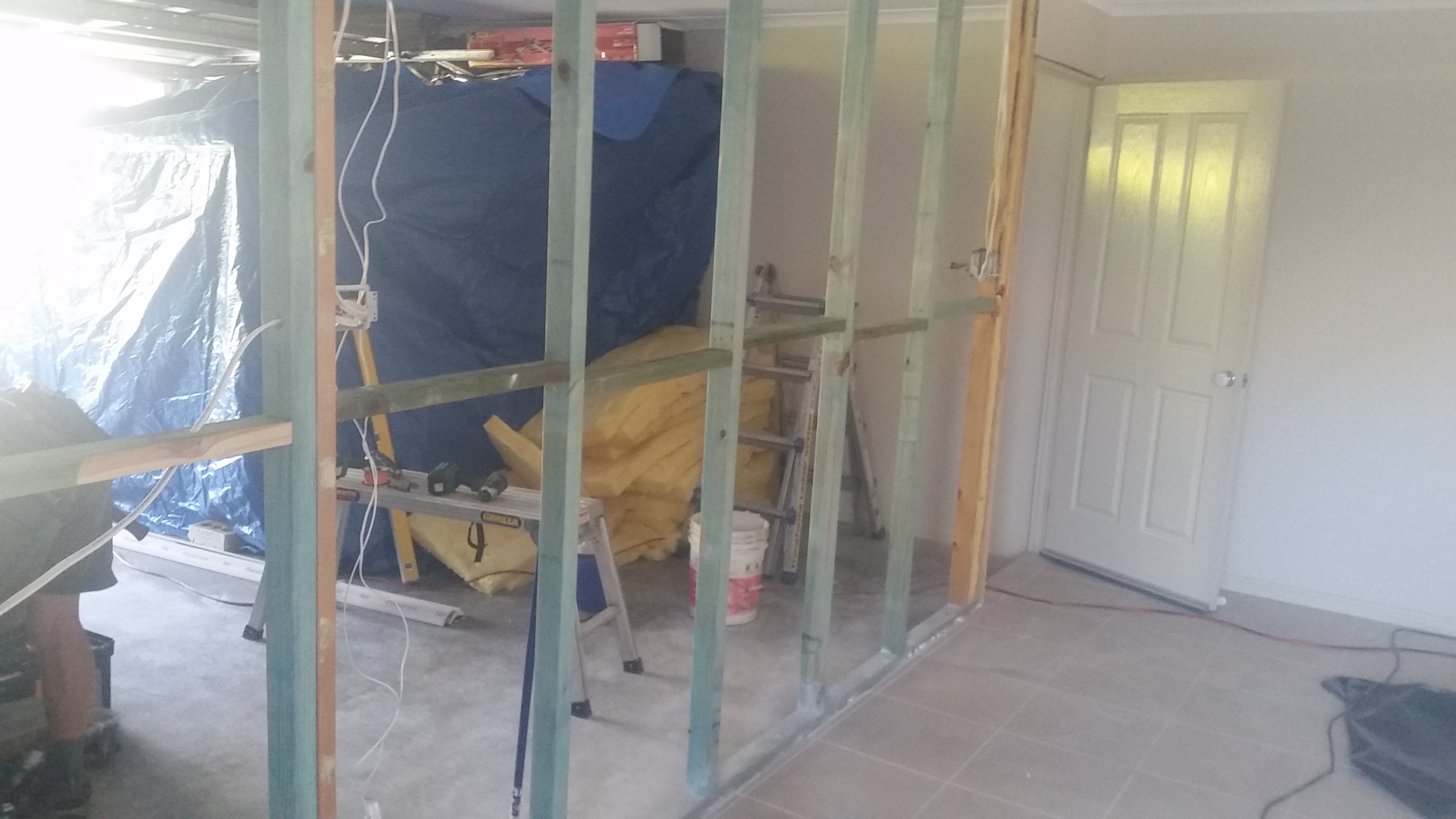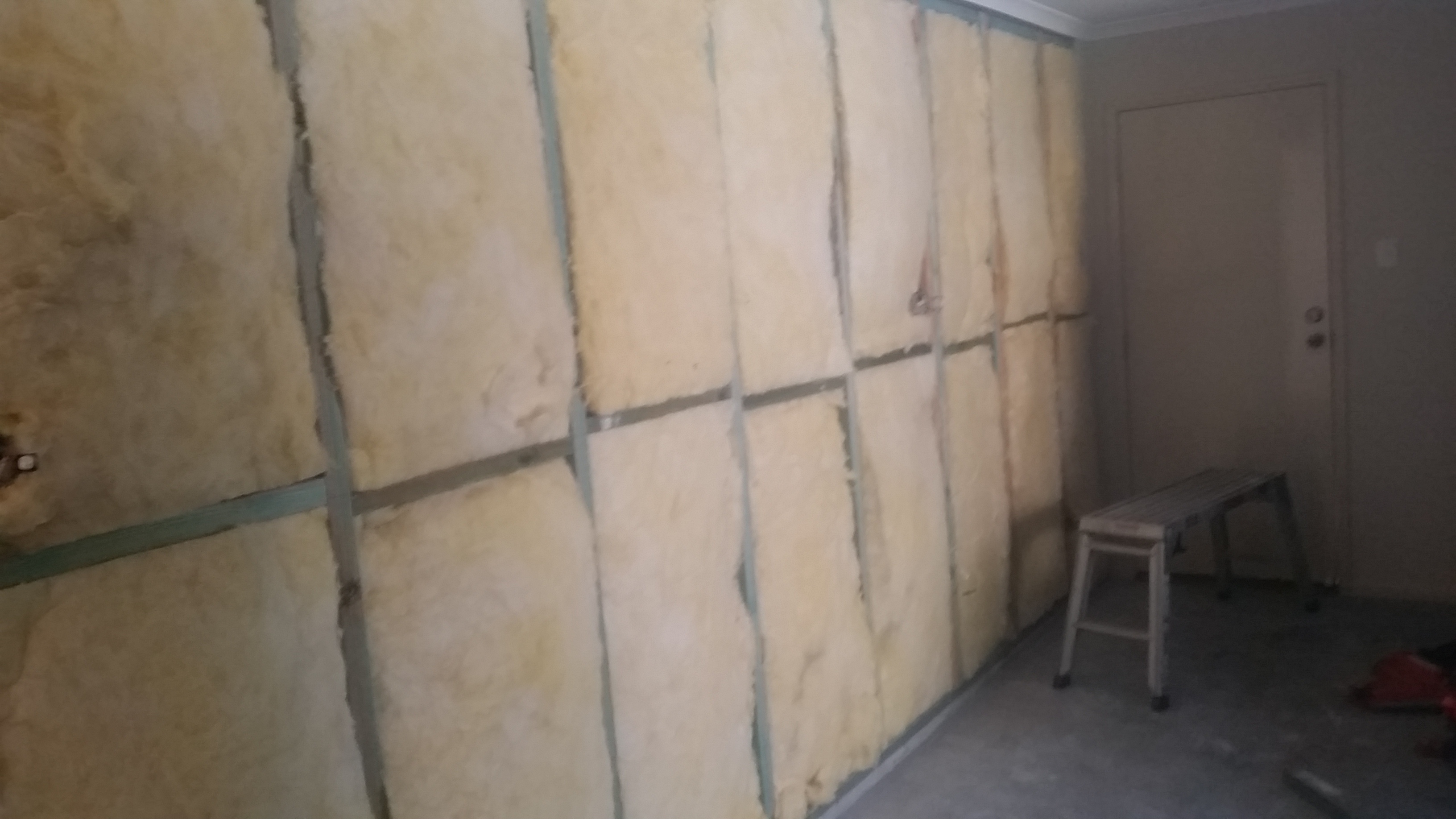 New wall was constructed and insulation reinstalled, after which new wall sheeting was layed and set.